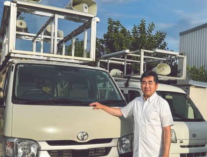 累計400を超える選挙活動に従事、選挙カー貸出とともに候補者の寄り添い、共に当選を目指す。